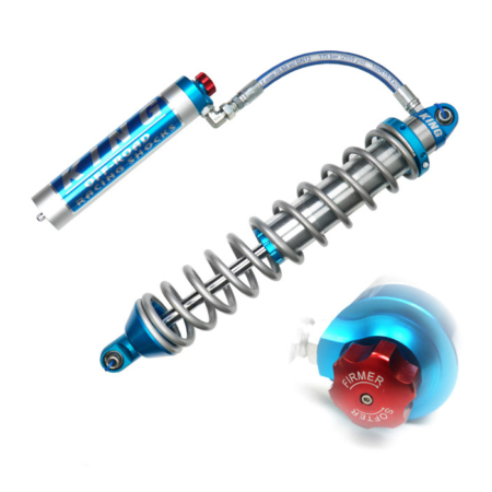 King 2.5 Remote Reservoir coilovers with Compression Adjusters from AccuTune Off-Road come pre-tuned for your ride, your terrain, and your driving style. Some other dealers claim to sell “custom tuned King shocks” but they’re really selling standard valving no matter which box you click or what you tell them it’s going on. In addition most King shocks come with a single flutter disk that can’t be fully tuned. As a result we custom tune every King 2.5 Remote Reservoir Coilover shock by hand using AccuTune Equations, and AccuTune Double Flutter Stacks to give you the best performance possible. Call us to learn more about what we can do for you.