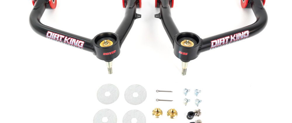 • 2019+ chevy/gmc 1500 Dirt King upper control arm. This tubular steel upper control arm features moog ball joint and urethane bushings.