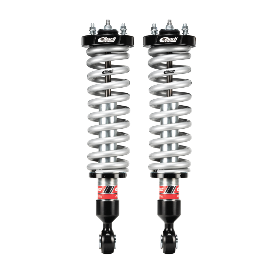 Eibach’s PRO-TRUCK Coilover 2.0 is built for serious off-road performance, featuring a threaded body design for precise ride height adjustment and enhanced damping control. Each pre-assembled coilover is a direct factory replacement, requiring no additional parts and sold in pairs for convenience. The adjustable threaded spring perch accommodates added vehicle weight and maximizes clearance, while ERO off-road race springs ensure strength and reliability. Built with anodized 6061-T6 billet aluminum mounts, a 46mm piston, and a monotube design with nitrogen-filled variable force valving, these coilovers deliver durability, control, and maximum capability on any terrain. Designed to allow for 0.8″-3.25″ front lift.