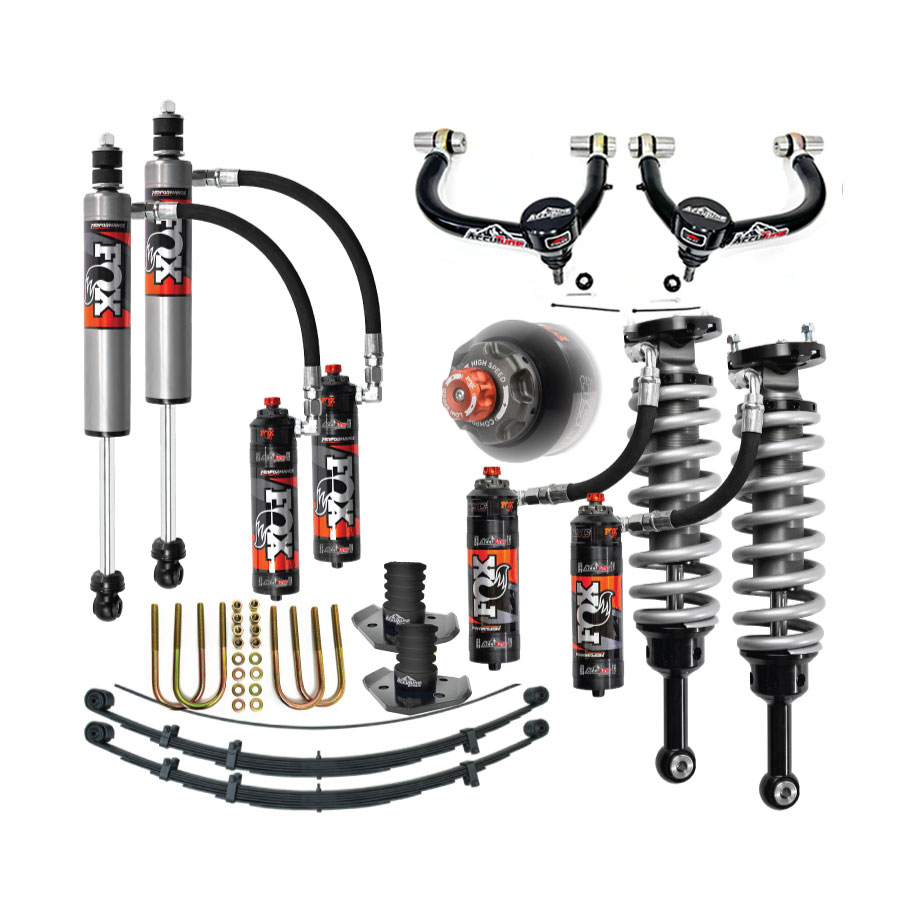 The front of Tacoma's use A-Arms with a large motion ratio so large shocks are required provide off-road capability. Fox or King 2.5 coilovers provide the diameter necessary to make the damping force required to prevent your Tacoma from being too bouncy. The remote reservoirs decrease the operating pressure for a smoother ride and longer life span. The extended travel allows for lift heights up to 2.5" without the suspension over extending. For real off-road performance look no further than a set of custom valved Fox or King Coilovers.