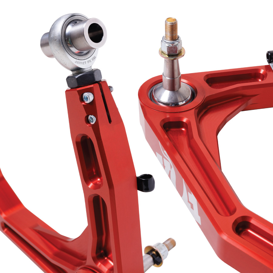 FOX engineers have carefully optimized the suspension geometry of their UCAs to match each specific vehicle application. These UCAs provide the proper alignment correction needed when lifting your truck, while also maximizing droop travel for improved articulation off-road. The added caster built into the design helps reduce steering wander at higher speeds, giving you better stability and confidence behind the wheel.