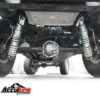 By giving the JK 5" of up travel there is enough room for the coilovers to work and to provide a comfortable ride while gently absorbing bumps. Through our years of testing and tuning we've found that less up travel is ok for crawling, but significant comfort and control are given up on normal trail riding. Bouncing off the bump stops can cause harshness, loss of momentum, or in extreme situations a loss of control. In order to deliver the off-road performance worthy of the AccuTune name we designed the kit to have 5" of up travel.